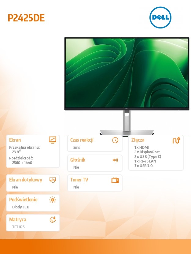 Monitor 23.8 cala P2425DE IPS LED QHD (2560x1440)/16:9/HDMI/2xDP/2xUSB-C/3xUSB/3Y AES&PPG