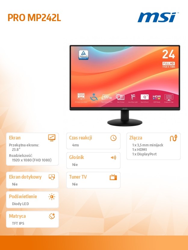 Monitor 23.8 cala PRO MP242L LED/FHD/Flat/100Hz/czarny