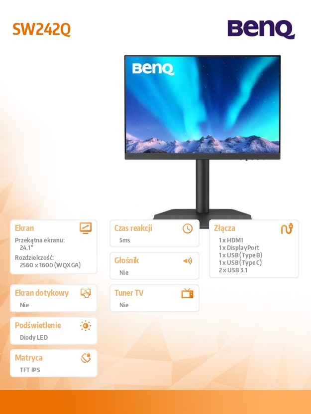 Monitor 23.8 cala SW242Q 2K RGB 5ms/400:1/FOTO/HDMI
