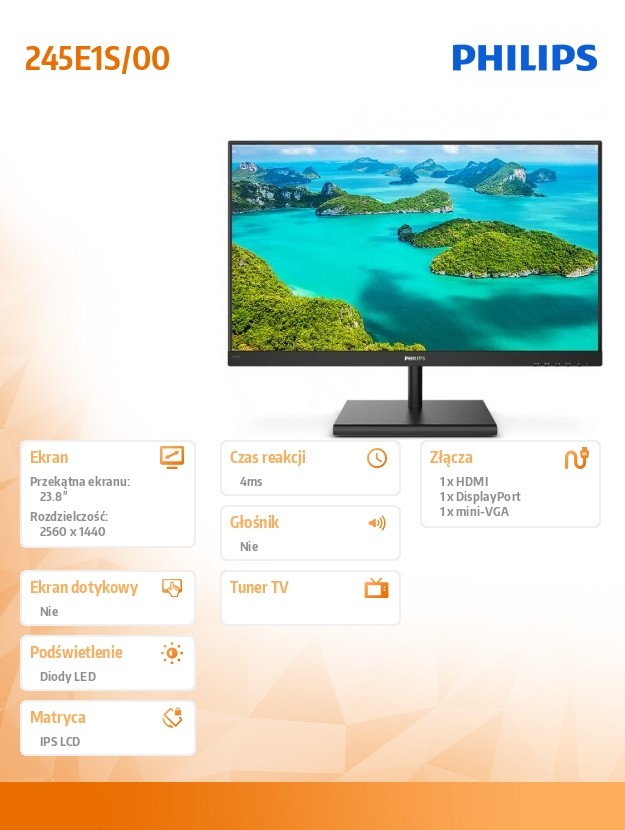 Monitor 245E1S 23.8 cala IPS HDMI DP FreeSync