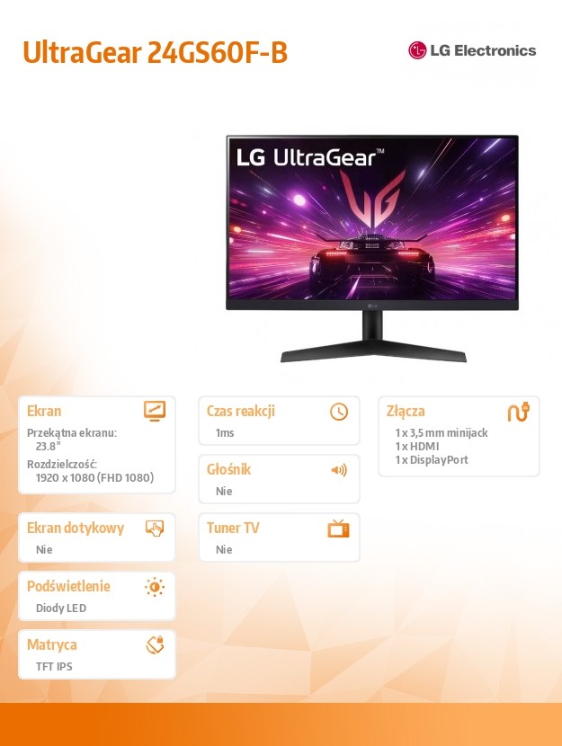 Monitor 24GS60F-B 24 cale IPS FHD 180Hz 1ms HDR10