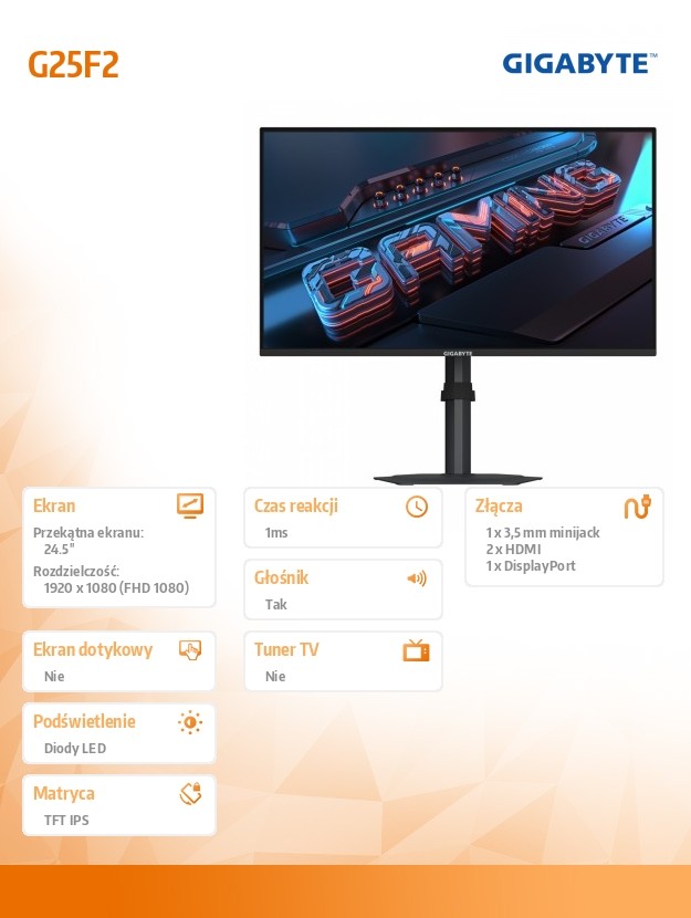 Monitor 25 cali AORS G25F2 EK IPS/FHD/200Hz/2HDMI/DP