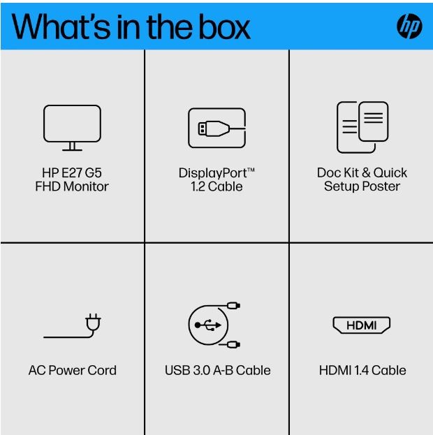 Akcesoria w zestawie: Monitor Kabel DisplayPort Kabel HDMI Karta gwarancyjna Kabel USB typu B do A Plakat szybkiej instalacji Przewód zasilający