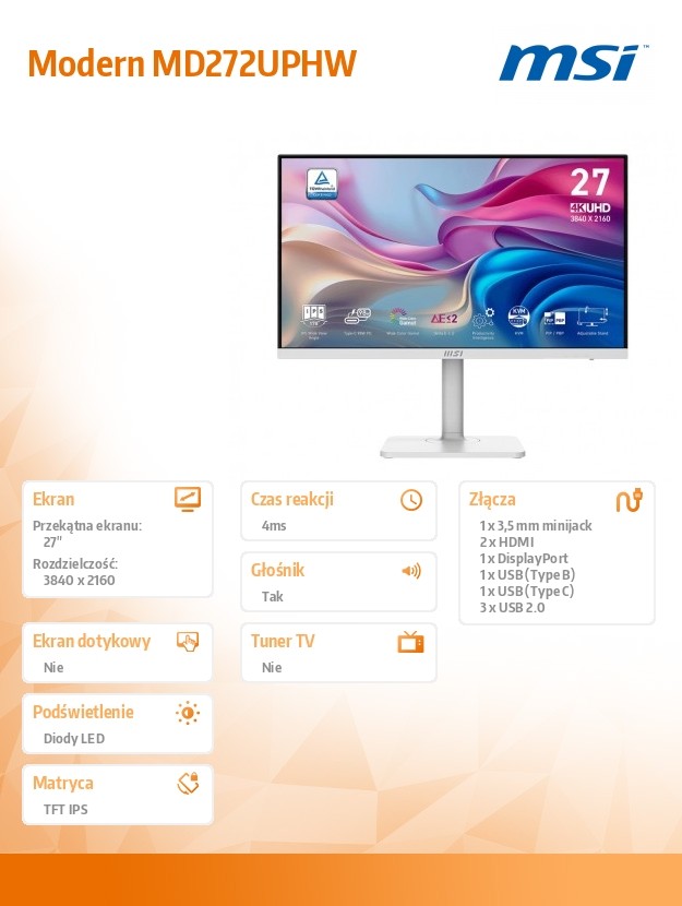 Monitor 27 cali Modern MD272UPHW LED/UHD/Flat/60Hz/biały