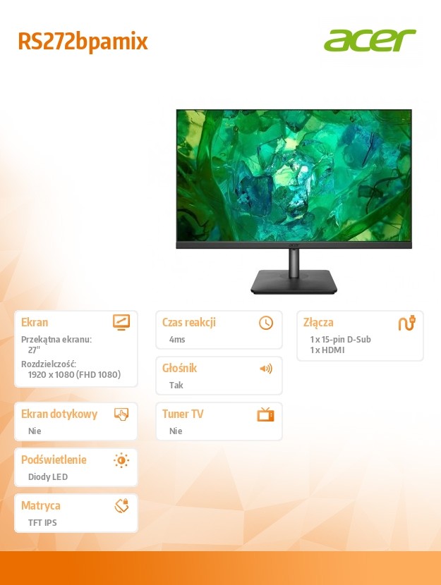 Monitor 27 cali VERO RS272bpamix IPS 4ms/250cd/m2 D-SUB HDMI Głośnik
