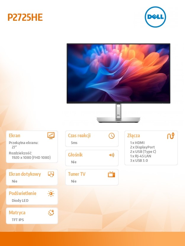 Monitor Dell 27 z koncentratorem USB-C P2725HE