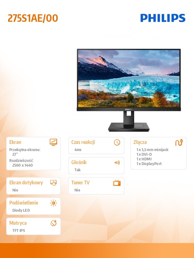 Monitor 275S1AE 27 cali IPS DVI HDMI DP Pivot