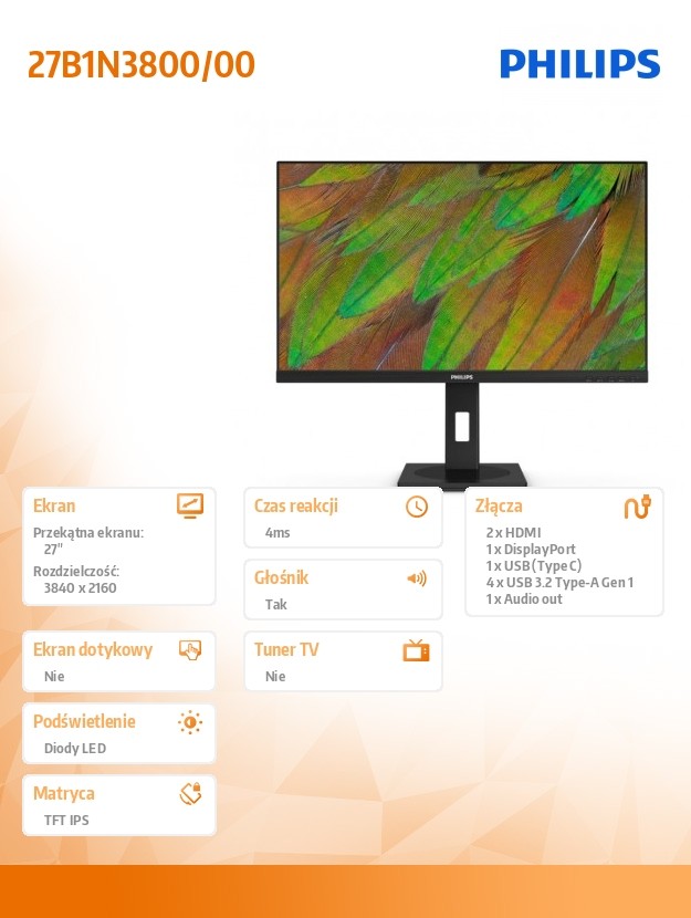 Monitor 27B1N3800 27 cali IPS 4K HDMIx2 DP Pivot Głośniki