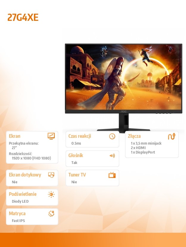 Monitor 27G4XE 27 cali IPS 180Hz HDMIx2 DP Głośniki
