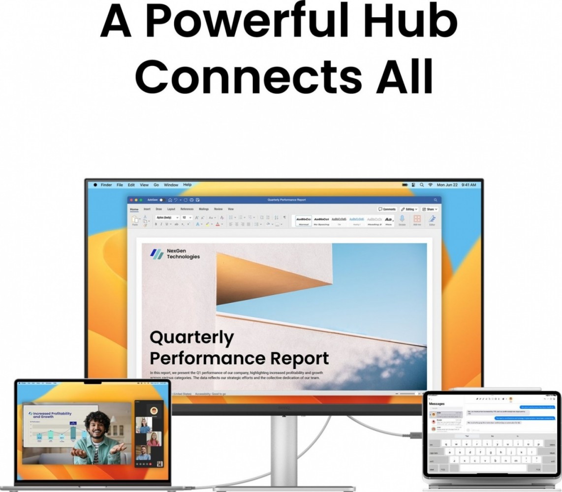 31,5-calowy monitor 4K UHD do MacBooka Pro i MacBooka Air Rozszerz widok swojego MacBooka dzięki spójnym kolorom Maca za pomocą jednego kabla Bezproblemowa synchronizacja jasności i głośności między MacBookiem a monitorem Posiada 2 porty USB-C o mocy 90 W i 15 W do ładowania urządzeń