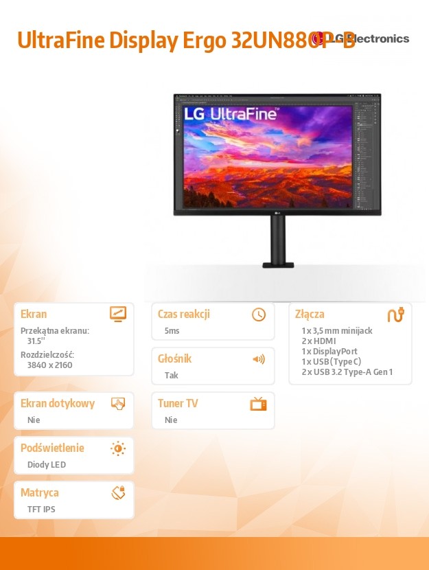 Monitor 32UN880P-B 31.5 cala 4K UHD HDR 10 FreeSync