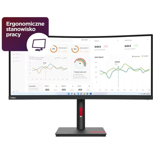 Monitor 34 cale ThinkVision T34w-30 WLED LCD 63D4GAT1EU