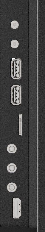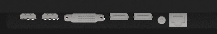 Gniazda we/wy: 3 x HDMI, 1 x RS-232 (COM), 2 x USB 2.0, 2 x 3,5 mm minijack, 1 x RJ-45 LAN, 2 x DisplayPort