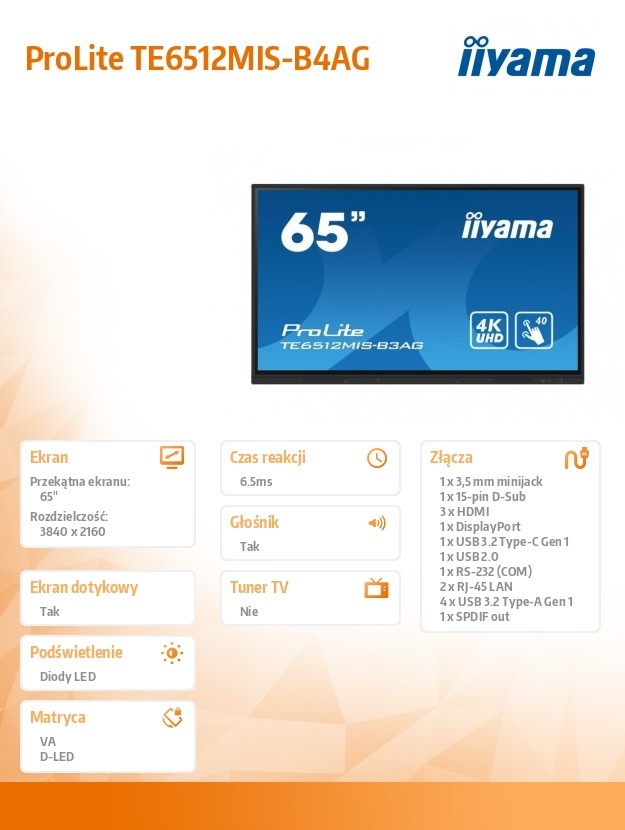 TE6512MIS-B4AG to interaktywny monitor 4K UHD, stworzony z...