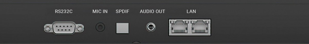 Gniazda we/wy: 2 x 3,5 mm minijack, 2 x RJ-45 LAN, 3 x HDMI, 1 x DisplayPort, 2 x USB 3.2 Type-C Gen 1, 1 x RS-232 (COM), 1 x SPDIF out, 3 x USB 3.2 Type-A Gen 1
