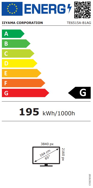 Monitor 65 cali TE6515A-B1AG IPS,4K,40pkt,550cd,DeepContrast-IR+, HDMI x2,DP,USB-C, 2 x 20W, OPS Slot x1, 5xUSB, 2xRJ45,8-Array,EDLA, WiFi,PiP, iiW