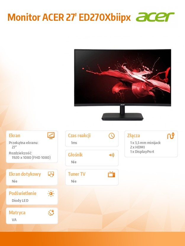 Monitor dla graczy Acer ED270XBIIPX Curved