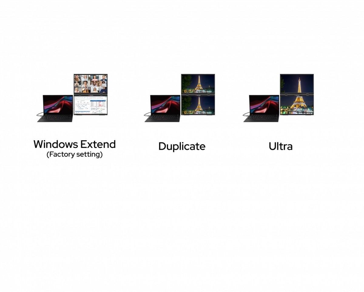 Specyfikacja techniczna: Typ panelu: IPS Przekątna wyświetlacza: 2 x 15,6 cala Rozdzielczość: 1920 x 1080 pikseli (dla każdego ekranu) Proporcje obrazu: 16:9 Jasność: 220 - 250 cd/m (typowa) Kontrast: 1000:1 (typowy) Kąty widzenia (CR >10): 89°/89°/89°/89° Czas reakcji: GTG: 10 ms Tr + Tf: 20 ms Btw: 20 ms Pokrycie gamy kolorów NTSC: 45% Obszar aktywny (szer. x wys.): 344,16 × 193,59 mm Wielkość piksela: 179,25 × 179,25 m Obsługa HDR: Tak Tryby wyświetlania: Rozszerzony, powielony, ultra Wbudowane głośniki: Tak (2 x 1 W) Czujnik grawitacyjny: Tak (tylko górny ekran, obsługuje automatyczne obracanie po złożeniu) Zgodność z VESA: 75 mm