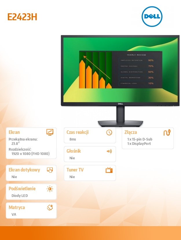 Monitor E2423H 23.8 cali VA LED Full HD (1920x1080) /16:9/VGA/DP/3Y AES