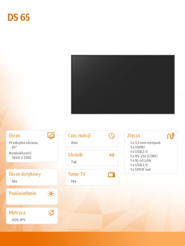 Monitor informacyjny DS 65 cali - 18/7 2x10W Android 11.0