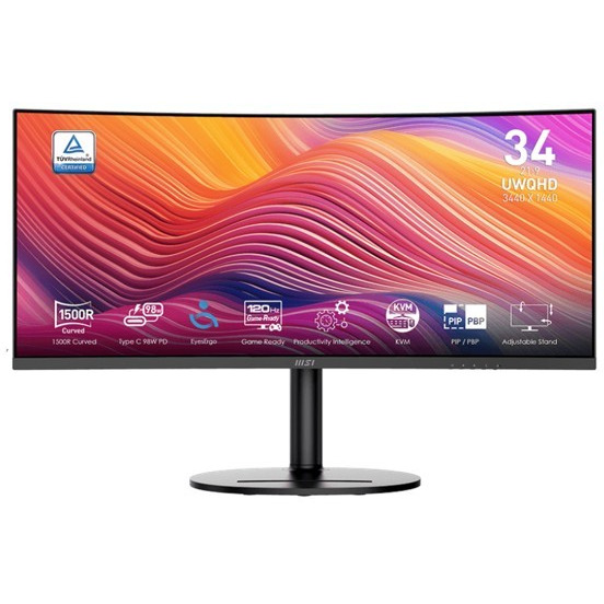 21:9 krzywizna 1500R zapewnia immersyjne i komfortowe wrażenia wizualne, eliminując zniekształcenia i zapewniając szersze pole widzenia. Gotowy do lekkiego grania z 120Hz wysoką częstotliwością odświeżania i AMD FreeSync Premium. Wbudowane połączenie USB typu C z funkcją dostarczania mocy 98W pozwala na łatwe podłączenie i ładowanie urządzeń. Tryby PIP/PBP zapewniają lepszą efektywność dla twórców, gdy jest to potrzebne. Wyświetlacz certyfikowany przez TÜV zapewnia ochronę i zdrowie wzroku. Technologia MSI EyesErgo z technologią antyflicker pomaga zapobiegać zmęczeniu oczu. MSI Eye-Q Check pomaga w samodzielnym sprawdzaniu oczu i przypomina o odpoczynku podczas długiego korzystania z monitora. Uchwyt zaprojektowano z ergonomicznymi cechami, w tym regulacją kąta nachylenia, obrotu i wysokości. Utrzymuj wszechstronność na różnych urządzeniach, wykorzystując wiele źródeł wejściowych, takich jak porty Type-C, HDMI i DP. Ciesz się najczystszym otoczeniem dzięki wygodnemu i odczepianemu systemowi zarządzania kablami. Dwa wbudowane głośniki.