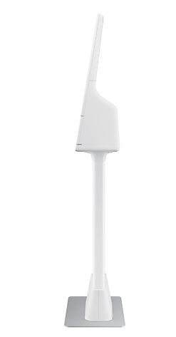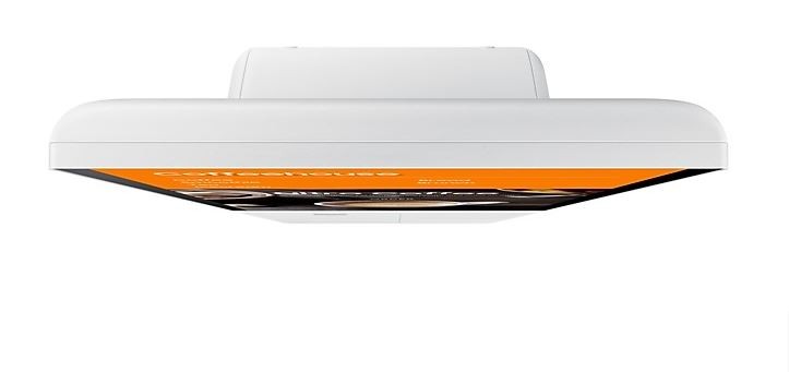 Kiosk Samsung składa się z pojedynczego ekranu i modułu łączącego wraz z opcjonalną podstawą. Design umożliwia estetyczne i wygodne poprowadzenie przewodów, a kremowa biel urządzenia i prostota stojaka sprawiają, że kiosk doskonale wpasuje się w stylistykę każdego sklepu.