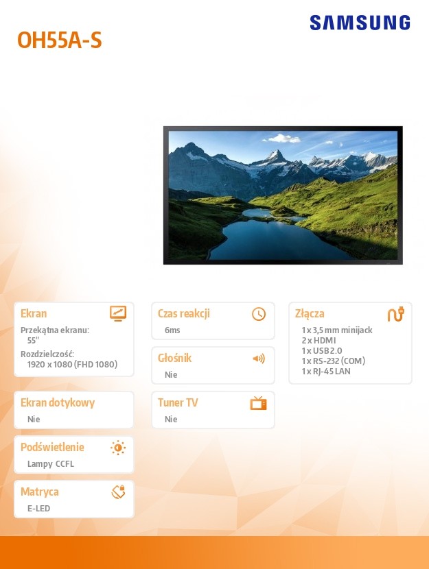 Monitor profesjonalny OH55A-S 55 cali błyszczący 24h/7 3500cd/m2 S7 Player (Tizen 5.0) 3 lata On-Site (LH55OHAESGBXEN)