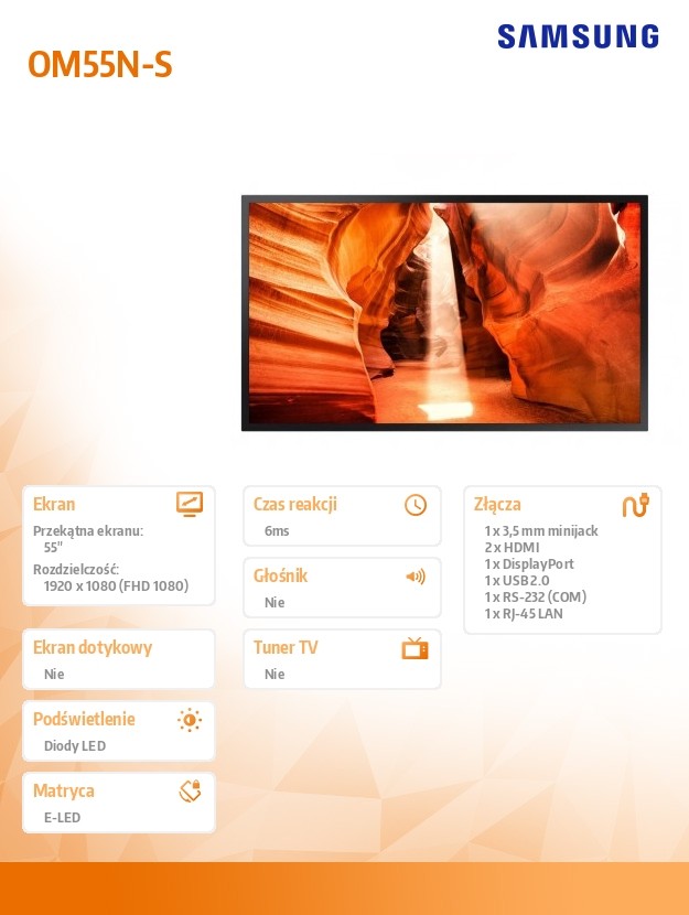 Monitor profesjonalny OM55N-S 55 cali Błyszczący 24h/7 4000(cd/m2) 1920x1080 (FHD) S6 Player (Tizen 4.0) Wi-Fi 3 lata On-Site (LH55OMNESGBXEN)
