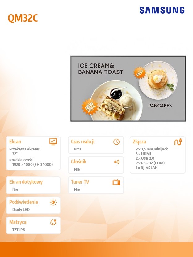 Monitor profesjonalny QM32C 32 cale Błyszcząca/IPS 24h/7 400(cd/m2) 1920x1080 (FHD) S10 Player (Tizen 7, VXT Ready) Wi-Fi/BT 3 lata d2d