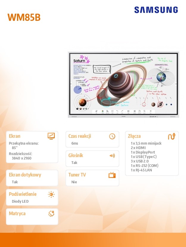 Producent: Samsung | Kod produktu: ULSAM085IWM85BW