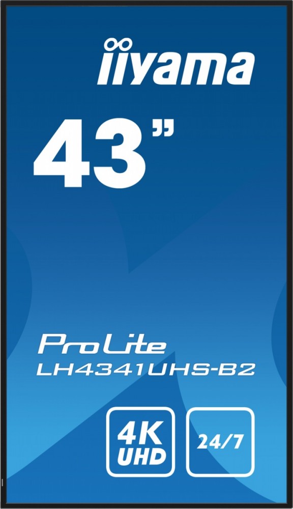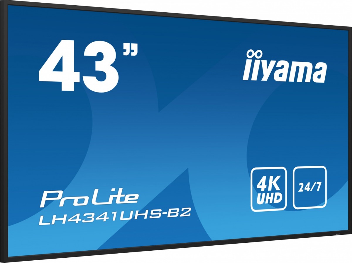 Wyposażony w wąską ramkę iiyama LE4341UHS to profesjonalny wyświetlacz Digital Signage oferujący czas pracy 24/7 w orientacji pionowej i poziomej.