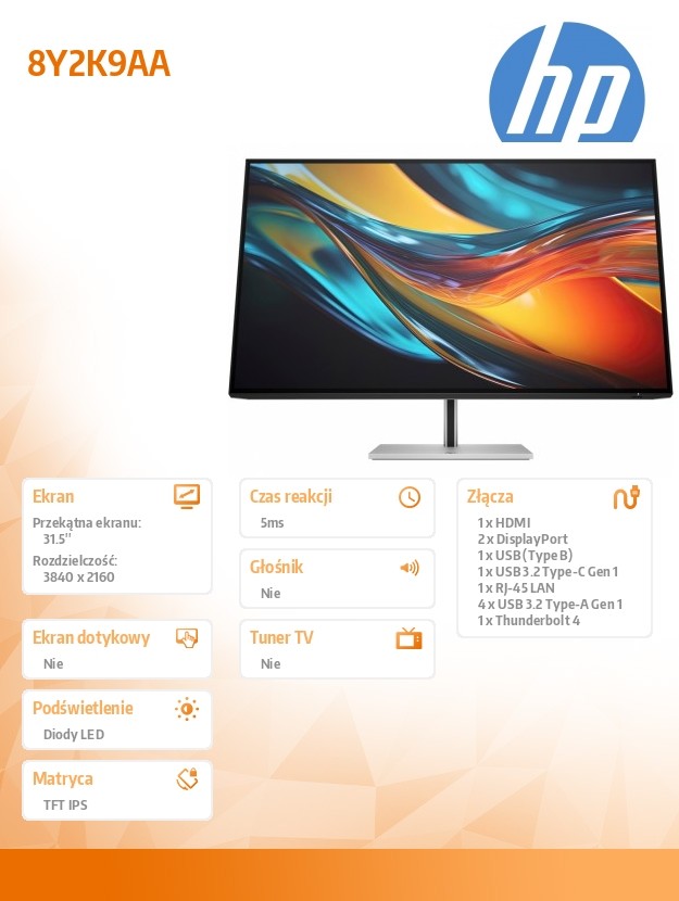 Monitor HP Pro seria 7 4K Thunderbolt 4 732pk, 31,5 cala