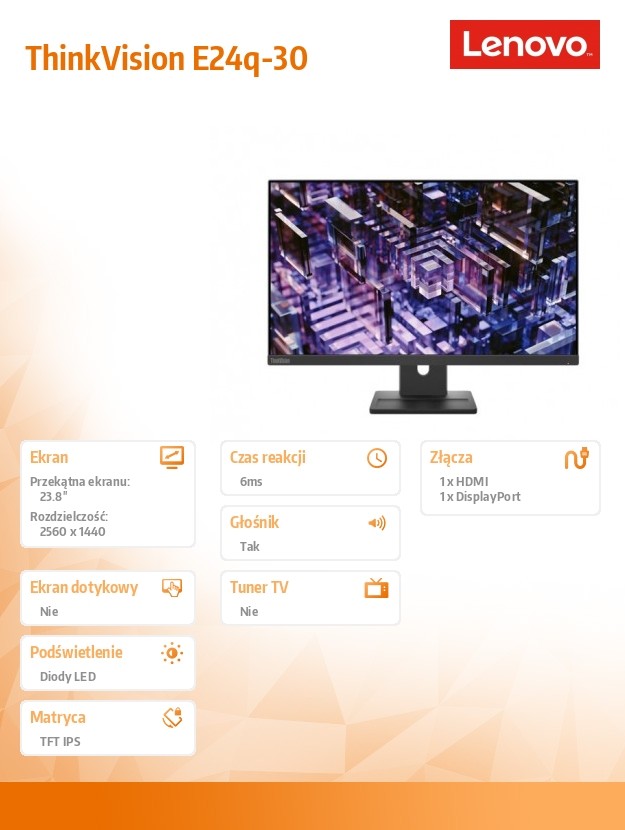 Monitor ThinkVision 23.8 cala E24q-30 63ECGAT2EU