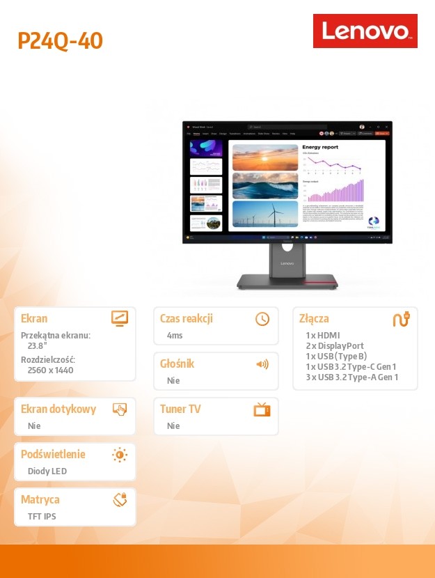 Monitor ThinkVision P24Q-40 23.8 cala 64B2GAT1EU
