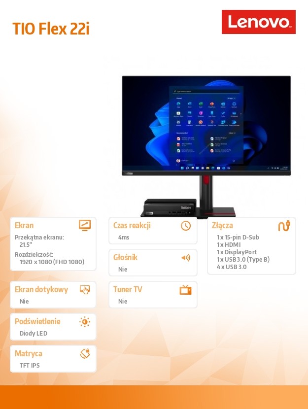 Monitor Tiny In One ThinkCentre 22i LCD FLEX - 21.5 12BLMAT6EU