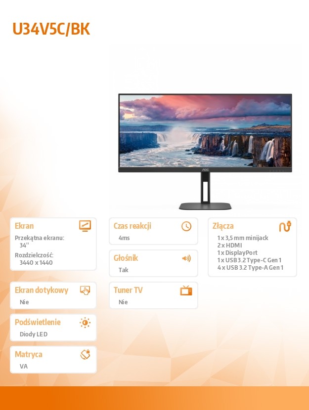Monitor U34V5C 34 cale VA 100Hz HDMI DP USB-C HAS