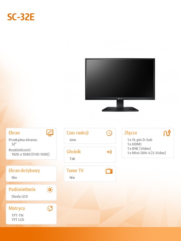 Monitor wielkoformatowy 32 cale SC-32E 300cd/m2 24/7 BNC czarny
