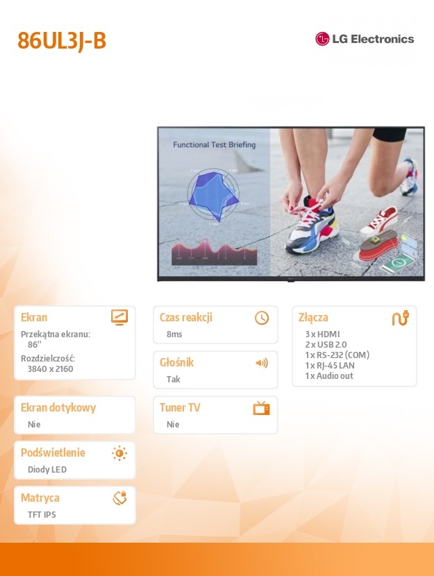 Monitor wielkoformatowy 86 cali 86UL3J UHD IPS 330cd/m2 16/7