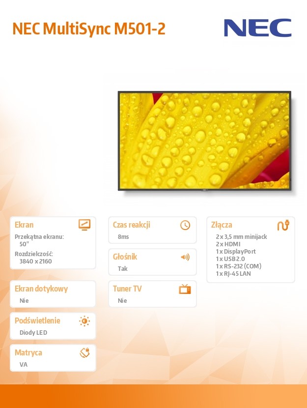 Monitor wielkoformatowy MultiSync M501-2 50 cali UHD 500cd/m2 24/7