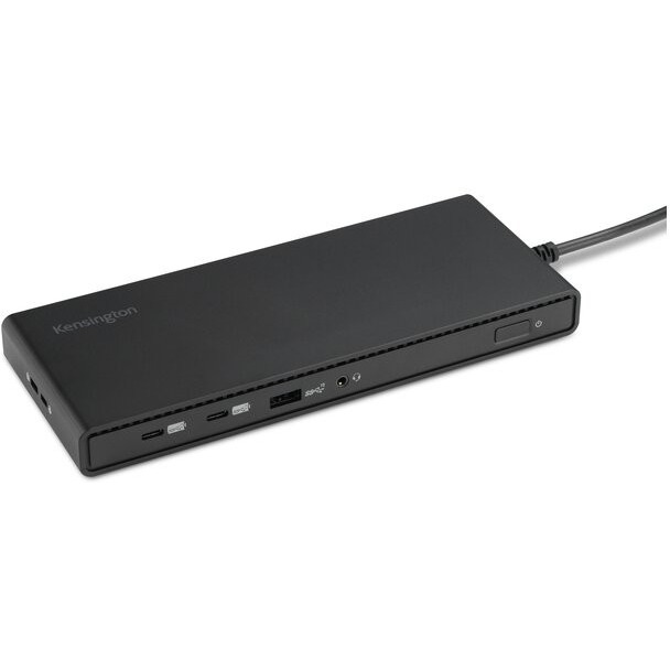 Potrójna stacja dokująca wideo SD4842P USB-C 10 Gb/s zwiększa wydajność pracy z materiałami wizualnymi. Jest więc idealna dla profesjonalistów wymagających rozwiązania typu Plug and Play do dokowania laptopów z portem USB-C, a także dla organizacji stawiających na zrównoważony rozwój. Tworzywo sztuczne wykorzystane w stacji dokującej SD4842P składa się w 73% z materiałów pochodzących z recyklingu (PCR), co ma na celu zmniejszenie negatywnego wpływu na środowisko. Stacja SD4842P obsługuje do trzech monitorów zewnętrznych Full HD (1080p przy 120 Hz) podłączonych za pomocą 1 złącza DP i 2 złączy HDMI. Stacja eliminuje też potrzebę stosowania nieporęcznych adapterów, ponieważ może ładować podłączone akcesoria bez potrzeby polegania na połączeniu z laptopem hosta. Zwiększ liczbę ekranów dzięki stacji dokującej, która poprawi Twoją wydajność pracy. Obsługuje do trzech monitorów zewnętrznych (1080p przy 120 Hz) podłączonych za pomocą 1 złącza DP i 2 złączy HDMI.** W celu uzyskania maksymalnej rozdzielczości stacja dokująca, monitor oraz laptop muszą obsługiwać DSC w wersji 1.2. Obudowa stacji składa się w 73% z materiałów pochodzących z recyklingu (PCR) Rozwiązanie Plug and Play do laptopów z systemem Windows 10 lub nowszym podłączonych za pomocą portu Thunderbolt 4, Thunderbolt 3, USB4 lub USB-C Alt Mode. Zasilanie do 100 W - ładuje podłączone akcesoria nawet bez potrzeby podłączania laptopa hosta. Stacja ma 5 portów USB do podłączania i ładowania urządzeń, 1 port Gigabit Ethernet oraz 1 złącze audio combo jack. Kompaktowa ładowarka sieciowa GaN ma udoskonaloną wydajność energetyczną. Przymocowany na stałe kabel hosta zapewnia niezawodne połączenie i zabezpiecza go przed kradzieżą. Możliwość montażu bez zajmowania miejsca na biurku i blokada Kensington. Obejmuje 3-letnią ograniczoną gwarancję i bezpłatne oprogramowanie Kensington Dockworks.