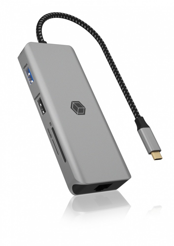 Stacja dokująca ICY BOX USB-C (9 w 1) na 2 monitory (2X HDMI), 4K 60 Hz, 3-drożny HUB USB 3.0, zasilanie 100 W, Gigabit Ethernet, czytnik kart SD, IB-DK4012-CPD Dwa monitory:...