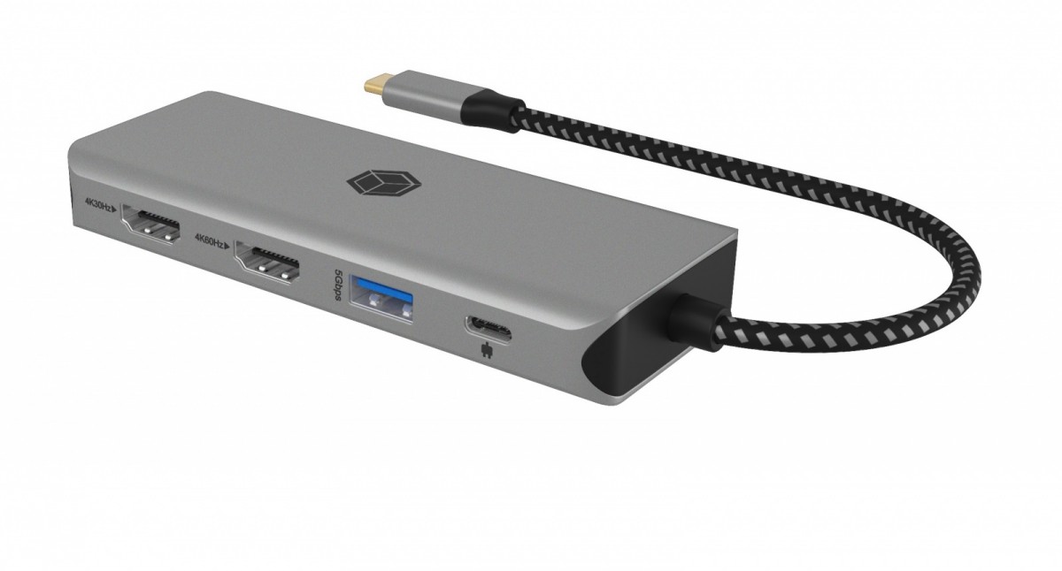 Stacja dokująca IB-DK4012-CPD 9w1, 2x HDMI, 4K60Hz, 3xUSB, 100W PD,LAN, Czytnik kart