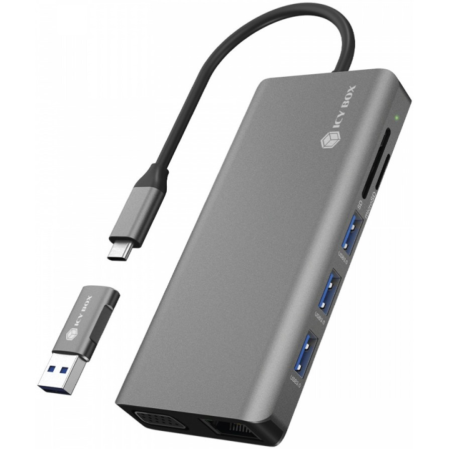 Kluczowe cechy: Wysokiej jakości aluminiowa obudowa z dwunastoma dodatkowymi interfejsami Transfer danych, wideo/audio i zasilanie za pomocą jednego kabla Type-C 1x interfejs High Speed HDMI do 3840x2160@30 Hz 1x High Speed HDMI i 1x interfejs VGA do 1920x1080@60 Hz 3x interfejs USB 3.0 typu A i 1x interfejs USB 2.0 typu A 1x port ładowania Type-C do zasilania o mocy do 100 W, bez transferu danych 1x interfejs Ethernet RJ45 z prędkością do 1000 Mbit/s 1x czytnik kart SD 2.0 i microSD 2.0 z prędkością do 25 MB/s Pojedyńcza jednostka LUN czytnik kart współpracuje z jedną kartą pamięci na raz 1x stereofoniczne gniazdo combo 3,5 mm do podłączenia zestawu słuchawkowego.
