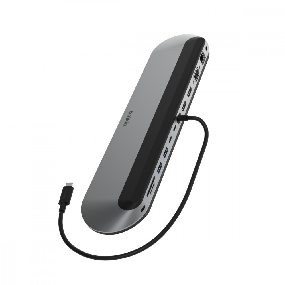 Zapewnij swoim urządzeniom zasilanie i łączność dzięki stacji dokującej gotowej do użycia od razu po wyjęciu z pudełka w komplecie z technologią Silicon Motion, zapewniającą większą moc i produktywność. Zbudowana z myślą o funkcjonalności stacja dokująca zapewnia stabilną łączność, zasilanie i produktywność bez względu na to, gdzie ją umieścisz na biurku. Uzyskaj 11 dodatkowych portów, opcję ładowania PD o mocy do 100 W, możliwość obsługi do trzech monitorów oraz stację dokującą, która może służyć jako podstawka pod laptopa. Wszystko to w połączeniu z najnowszą technologią Silicon Motion, zapewniającą dostęp do większej liczby ekranów bez konieczności stosowania sterownika.