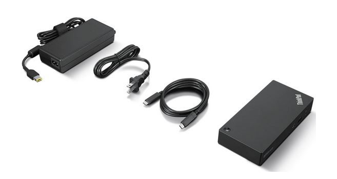 Akcesoria w zestawie: ThinkPad Uniwersalna stacja dokująca USB-C Smart Dock Zasilacz i przewód zasilający 135 W USB-C o długości 1 m Plakat gwarancyjny i instalacyjny
