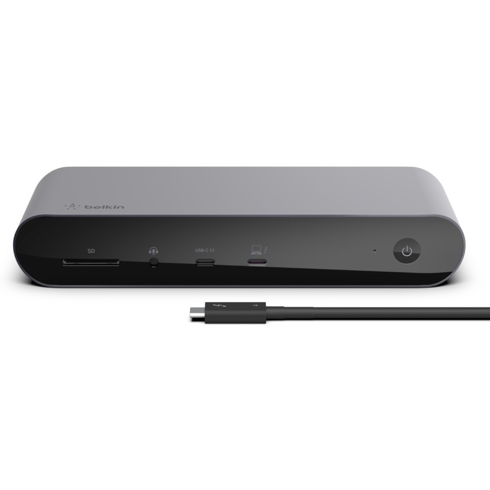 Stwórz najlepszą stację roboczą dzięki naszej stacji dokującej Pro Thunderbolt 4. Ma 12 portów do podłączenia laptopa MacBook lub Windows do wielu urządzeń, wideo, Ethernetu i zasilania za pomocą jednego kabla Thunderbolt 4. Uzyskaj transfer danych z szybkością do 40 Gb/s to 8 razy szybciej niż w przypadku USB 3.0. Ładuj jednocześnie swojego laptopa i inne podłączone urządzenia dzięki mocy Power Delivery do 90 W. Zanurz się w płynniejsze i wyraźniejsze wrażenia wizualne dzięki najwyższej rozdzielczości wideo na aż trzech dodatkowych wyświetlaczach. Dołączony kabel Thunderbolt 4 jest kompatybilny z Thunderbolt 3, USB-C i USB4.