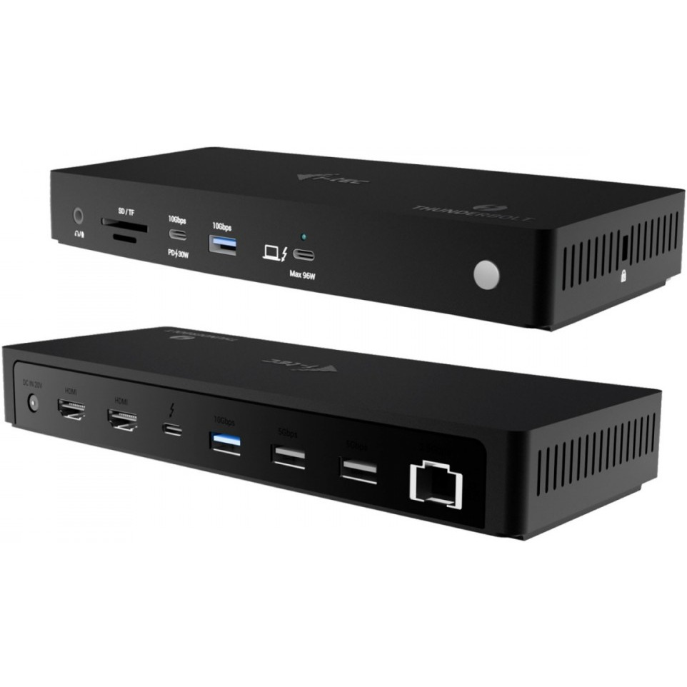 Stacja dokująca i-tec Thunderbolt4 Triple Display + Power Delivery 96 W Stacja dokująca o bardzo wysokiej wydajności, z możliwością podłączenia do trzech zewnętrznych monitorów (dotyczy systemów Windows) Zgodna z laptopami i tabletami wyposażonymi w interfejsy Thunderbolt 3/4/5, USB4 oraz USB-C (urządzenie źródłowe musi obsługiwać tryb DisplayPort Alt Mode) W zestawie znajduje się 1x certyfikowany kabel Thunderbolt 4 o długości 100 cm Port Thunderbolt 4 zapewnia prędkość przesyłu danych do 40 Gb/s lub wyjście wideo do 8K przy 60 Hz 5 portów USB umożliwia łatwe podłączenie wielu urządzeń i akcesoriów USB, z możliwością ładowania Zapewnia do 96 W mocy w standardzie Power Delivery dla kompatybilnych laptopów i tabletów z interfejsami USB4, USB-C i Thunderbolt Port Ethernet 2.5G LAN obsługuje prędkości sieciowe 10/100/1000/2500 Mb/s, zapewniając stabilne i ultraszybkie połączenie z internetem Gniazda kart SD/TF umożliwiają łatwy dostęp do kart pamięci Zintegrowane gniazdo audio 3,5 mm (wejście/wyjście) do wygodnego podłączenia słuchawek lub głośników