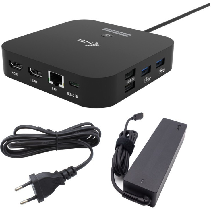 Kompatybilna z laptopami i tabletami z portami USB-C, USB4 i Thunderbolt. (Urządzenie źródłowe musi obsługiwać tryb DisplayPort Alt. Mode) 2× HDMI z obsługą do dwóch monitorów 4K/60 Hz (macOS obsługuje tylko jeden rozszerzony ekran). 6× portów USB (4× USB-A, 2× USB-C) umożliwia łatwe podłączenie wielu urządzeń i akcesoriów USB. Obsługuje Power Delivery do 100 W dla kompatybilnych laptopów i tabletów z USB-C, USB4 i Thunderbolt. Urządzenie źródłowe musi obsługiwać Power Delivery przez USB-C. GLAN Ethernet obsługuje prędkości sieci 10/100/1000 Mb/s, zapewniając stabilne i szybkie połączenie z internetem. Złącze audio 3,5 mm typu combo (wejście/wyjście) umożliwia łatwe podłączenie słuchawek lub głośników. Dostępny uchwyt VESA pomaga utrzymać porządek na biurku i zredukować liczbę kabli; dodatkowo gniazdo K-lock zwiększa bezpieczeństwo. Przełącznik zasilania On/Off pozwala zmniejszyć zużycie energii, gdy stacja dokująca nie jest używana. Uwaga: Ładowarka USB-C 100 W jest dołączona.