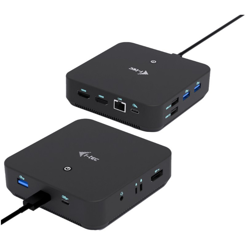 Kompatybilna z laptopami i tabletami wyposażonymi w porty USB-C, USB4 oraz Thunderbolt. (Urządzenie hosta musi obsługiwać tryb DisplayPort Alt. Mode) 2× HDMI i 1× DisplayPort++ z obsługą do trzech monitorów 4K lub jednego monitora 5K/60 Hz (w zależności od wydajności notebooka). macOS obsługuje tylko jeden rozszerzony ekran. 6× portów USB (5× USB-A, 1× USB-C) umożliwia łatwe podłączenie wielu urządzeń i akcesoriów USB. Obsługuje Power Delivery do 100 W dla kompatybilnych laptopów i tabletów z USB-C, USB4 i Thunderbolt. Urządzenie hosta musi obsługiwać Power Delivery przez USB-C. GLAN Ethernet obsługuje prędkości sieciowe 10/100/1000 Mb/s, zapewniając stabilne i szybkie połączenie z internetem. Złącze combo audio 3,5 mm (wejście/wyjście) umożliwia łatwe podłączenie zestawu słuchawkowego lub głośników. Uchwyt VESA pomaga utrzymać porządek na biurku i ograniczyć ilość kabli, a gniazdo K-lock zapewnia dodatkowe zabezpieczenie. Przełącznik zasilania On/Off pozwala zmniejszyć zużycie energii, gdy stacja dokująca nie jest używana. Uwaga: Zasilacz nie jest dołączony. Stację dokującą można zasilać oryginalnym zasilaczem laptopa lub dokupić opcjonalny zasilacz (kod produktu i-tec: CHARGER-C100W).