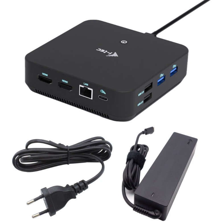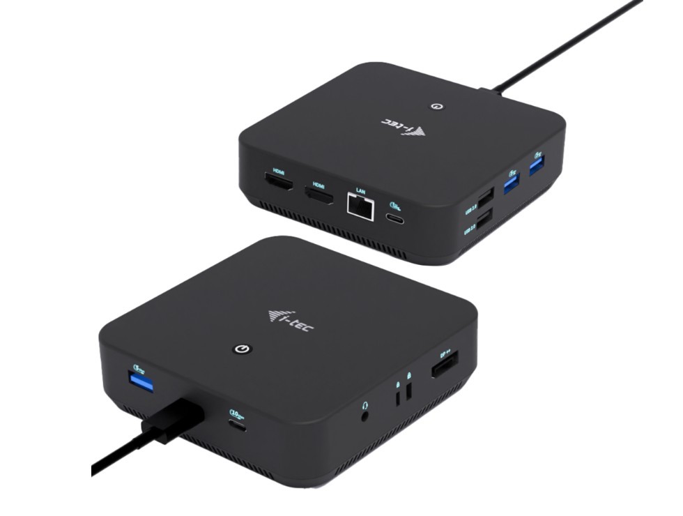 Kompatybilna z laptopami i tabletami wyposażonymi w porty USB-C, USB4 oraz Thunderbolt. (Urządzenie hosta musi obsługiwać tryb DisplayPort Alt. Mode) 2× HDMI i 1× DisplayPort++ z obsługą do trzech monitorów 4K lub jednego monitora 5K/60 Hz (w zależności od wydajności notebooka). macOS obsługuje tylko jeden rozszerzony ekran. 6× portów USB (5× USB-A, 1× USB-C) umożliwia łatwe podłączenie wielu urządzeń i akcesoriów USB. Obsługuje Power Delivery do 100 W dla kompatybilnych laptopów i tabletów z USB-C, USB4 i Thunderbolt. Urządzenie hosta musi obsługiwać Power Delivery przez USB-C. GLAN Ethernet obsługuje prędkości sieciowe 10/100/1000 Mb/s, zapewniając stabilne i szybkie połączenie z internetem. Złącze combo audio 3,5 mm (wejście/wyjście) umożliwia łatwe podłączenie zestawu słuchawkowego lub głośników. Uchwyt VESA pomaga utrzymać porządek na biurku i ograniczyć ilość kabli, a gniazdo K-lock zapewnia dodatkowe zabezpieczenie. Przełącznik zasilania On/Off pozwala zmniejszyć zużycie energii, gdy stacja dokująca nie jest używana. Uwaga: Ładowarka USB-C 100 W jest dołączona do zestawu.